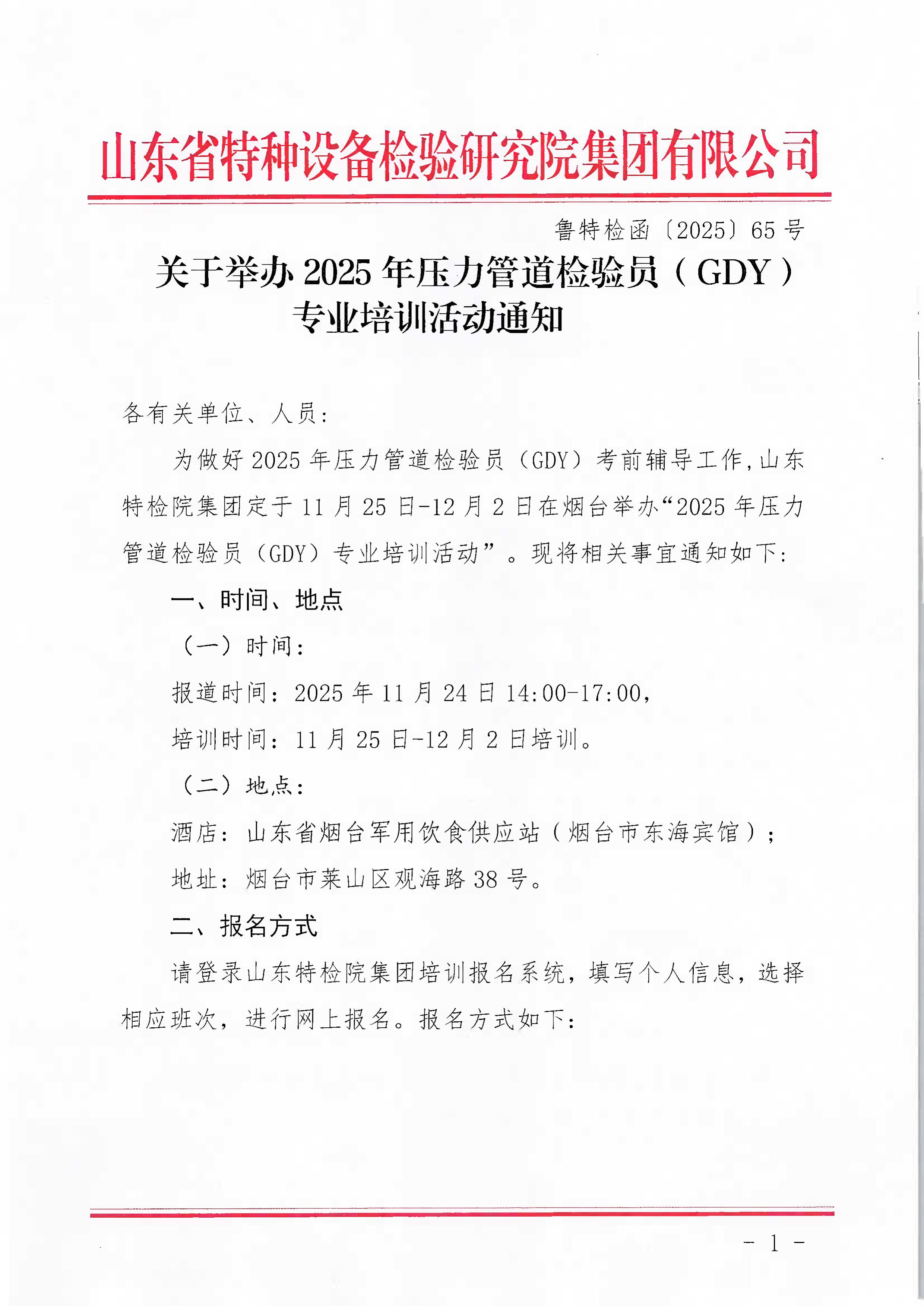 關(guān)于舉辦2025年壓力管道檢驗(yàn)員(GDY)專業(yè)培訓(xùn)活動(dòng)通知