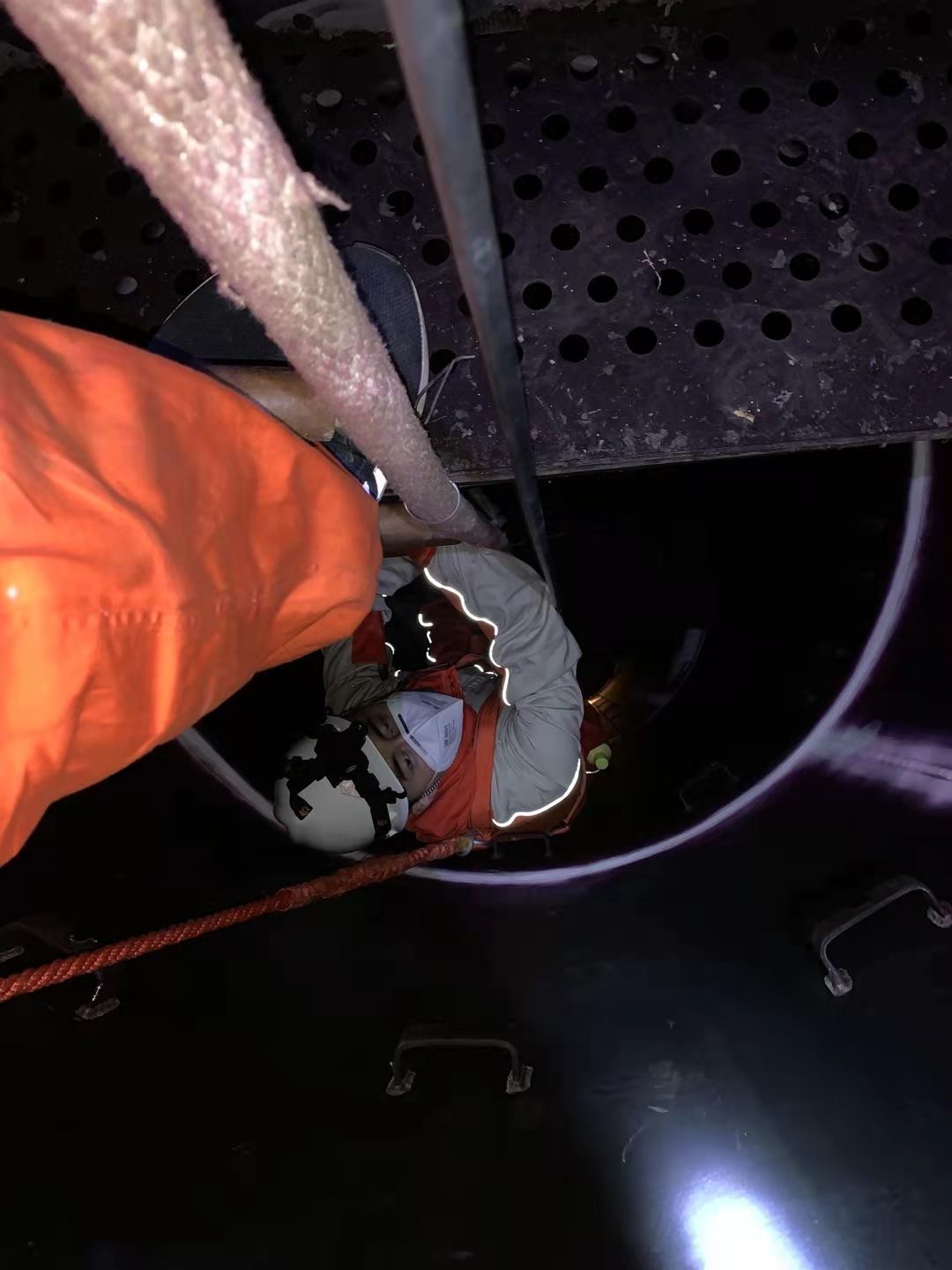 由于尿塔結構的特殊性,高度高、直徑小、塔盤密集,并且氣味很刺鼻,尿塔的檢驗難度很高。在檢驗過程中,檢驗人員要頭帶安全帽及頭燈、面帶口罩;胸口裝著對講機和氣體探測儀;腰上系安全繩掛防毒面具;褲子兜里帶著檢驗檢測儀器,在這種工作條件下,檢驗人員按照先前制定的檢驗方案,嚴格把關,為企業(yè)排除了諸多安全隱患。檢驗人員在工作中所表現(xiàn)出的專業(yè)技術水平和吃苦耐勞工作作風充分展示了我公司特檢人的特檢精神及風貌。得到了企業(yè)的肯定與好評!